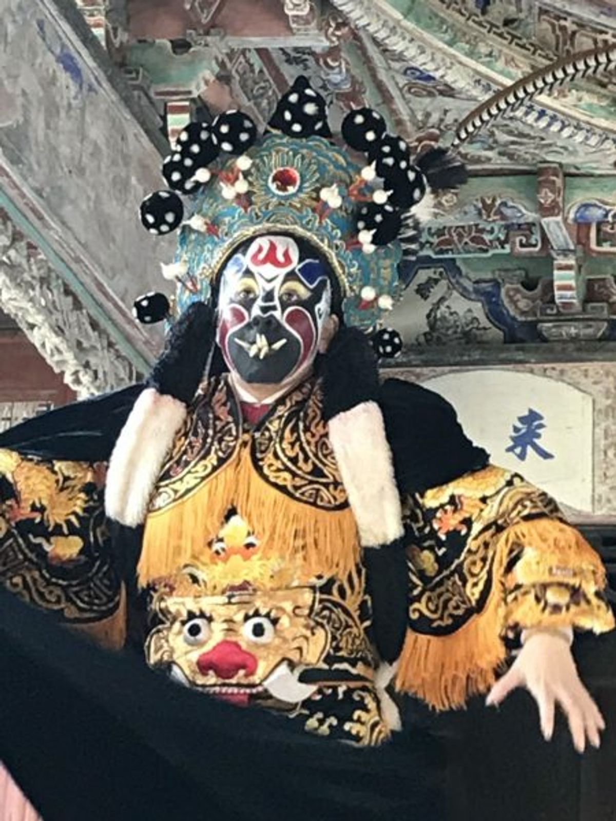 After the local official introduced me, the artist spoke in their natural voice, and I was floored. So this was the twist! The blustering juggernaut performance of a very yang-filled male character was done by a young woman, a performer named Xue Qiaoping!