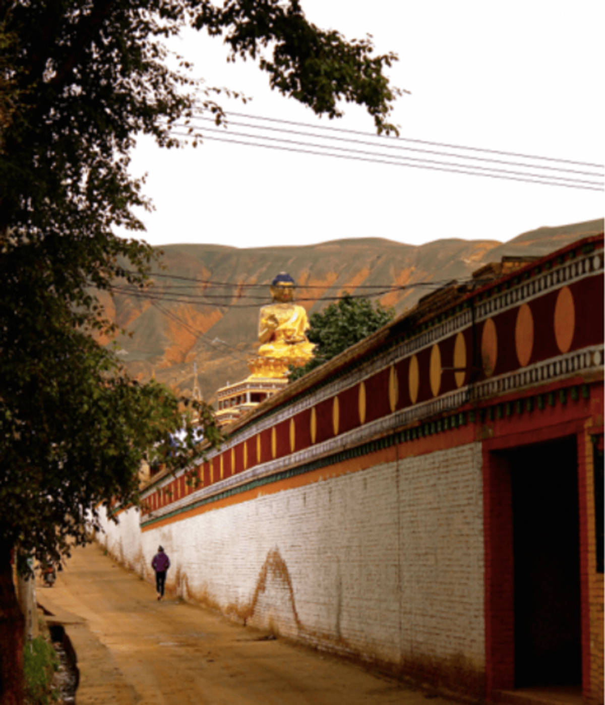 Social and physical divides: A tourist style photo of the wall that divides the Rongwo Buddhist Monastery and the rest of the village
