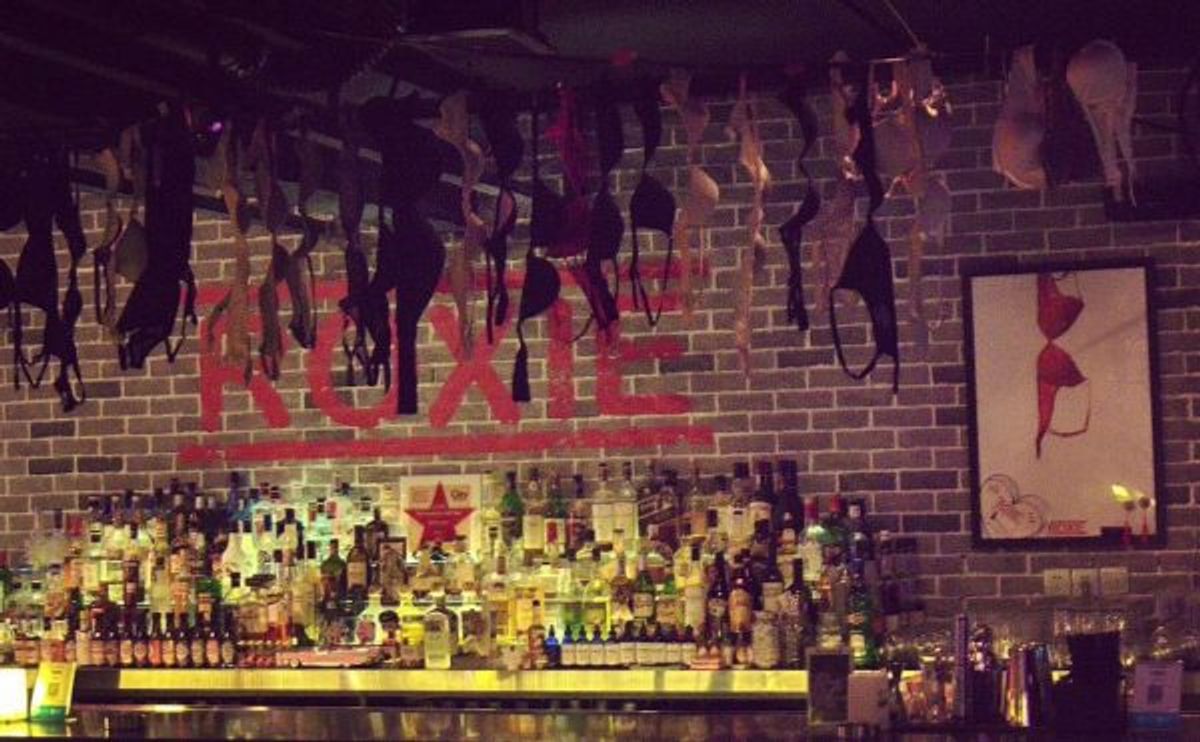 Bras hang from the ceiling at Roxie’s. The lesbian bar is a preeminent and dependable space for LGBTQ individuals in Shanghai, particularly queer women. Credit: Roxie's.