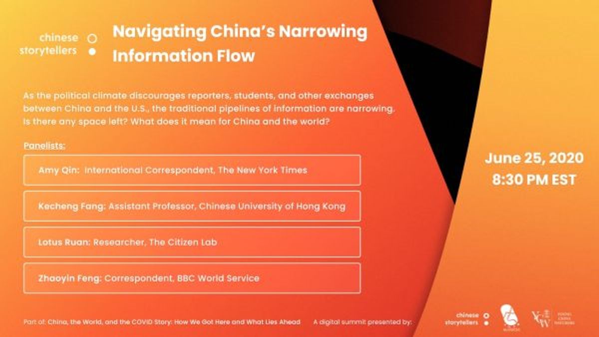 In the third event of the series, coordinated by Chinese Storytellers, panelists discussed China’s sophisticated formal and informal systems of information control and the diminishing channels of information flow in and out of the country.